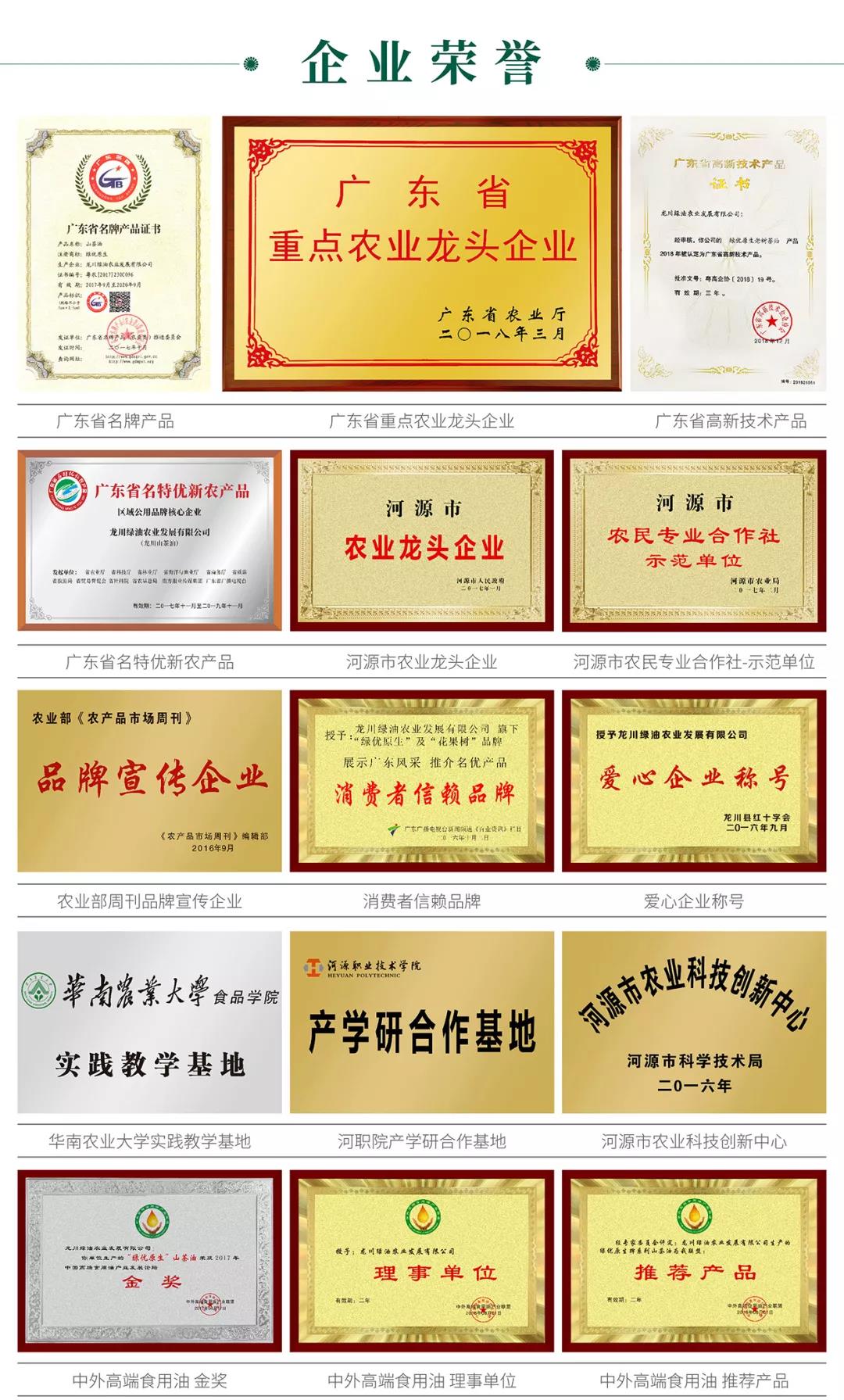 龍川綠油農(nóng)業(yè)發(fā)展有限公司,創(chuàng)建于2015年1月,是廣東省重點農(nóng)業(yè)龍頭企業(yè)。因公司專注于原生態(tài)山茶油相關(guān)產(chǎn)品的研發(fā)及加工生產(chǎn),而其山茶油產(chǎn)品的不飽和脂肪酸又高于90%,故稱之為“綠油”。