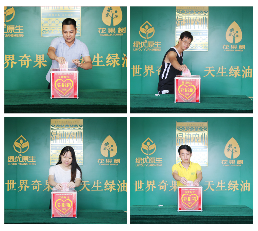 洪水無(wú)情人有情,大災(zāi)面前有大愛(ài)。在這關(guān)鍵時(shí)刻,綠油農(nóng)業(yè)作為一個(gè)具有高度社會(huì)責(zé)任感的企業(yè),積極響應(yīng)縣委、縣政府的號(hào)召,熱心捐款,為受災(zāi)地區(qū)奉獻(xiàn)愛(ài)心。綠油農(nóng)業(yè)共募捐128803元,其中愛(ài)心資金67203元,愛(ài)心物資價(jià)值共61600元(花果樹(shù)洗護(hù)兩件套100盒價(jià)值28000元、綠油老樹(shù)茶油500mlx2瓶禮盒裝100盒價(jià)值33600元)。公司將在第一時(shí)間把募捐的愛(ài)心款和愛(ài)心物資通過(guò)龍川縣慈善總會(huì)交到受災(zāi)群眾手中,幫助災(zāi)區(qū)盡快重建。
