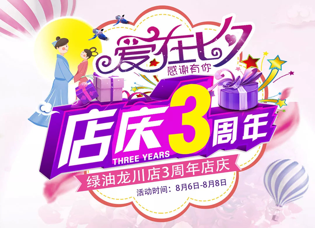 綠油3周年店慶,愛在七夕,感謝有你