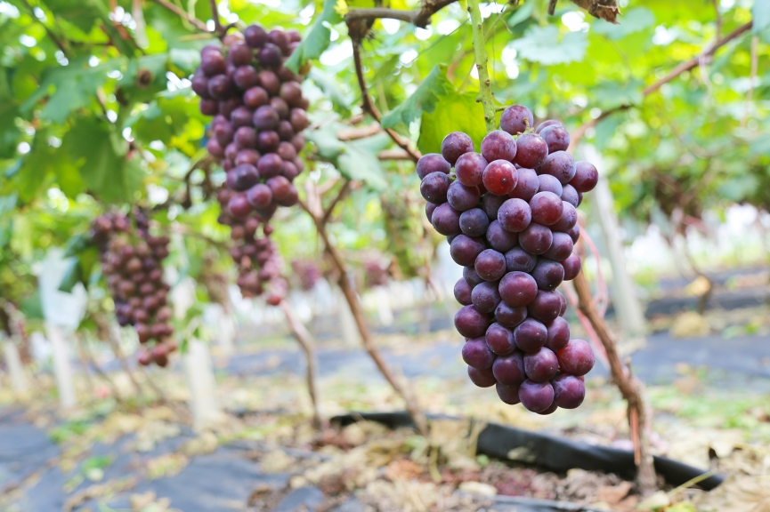 源東葡萄園第一批夏黑、陽光玫瑰陸續(xù)成熟啦