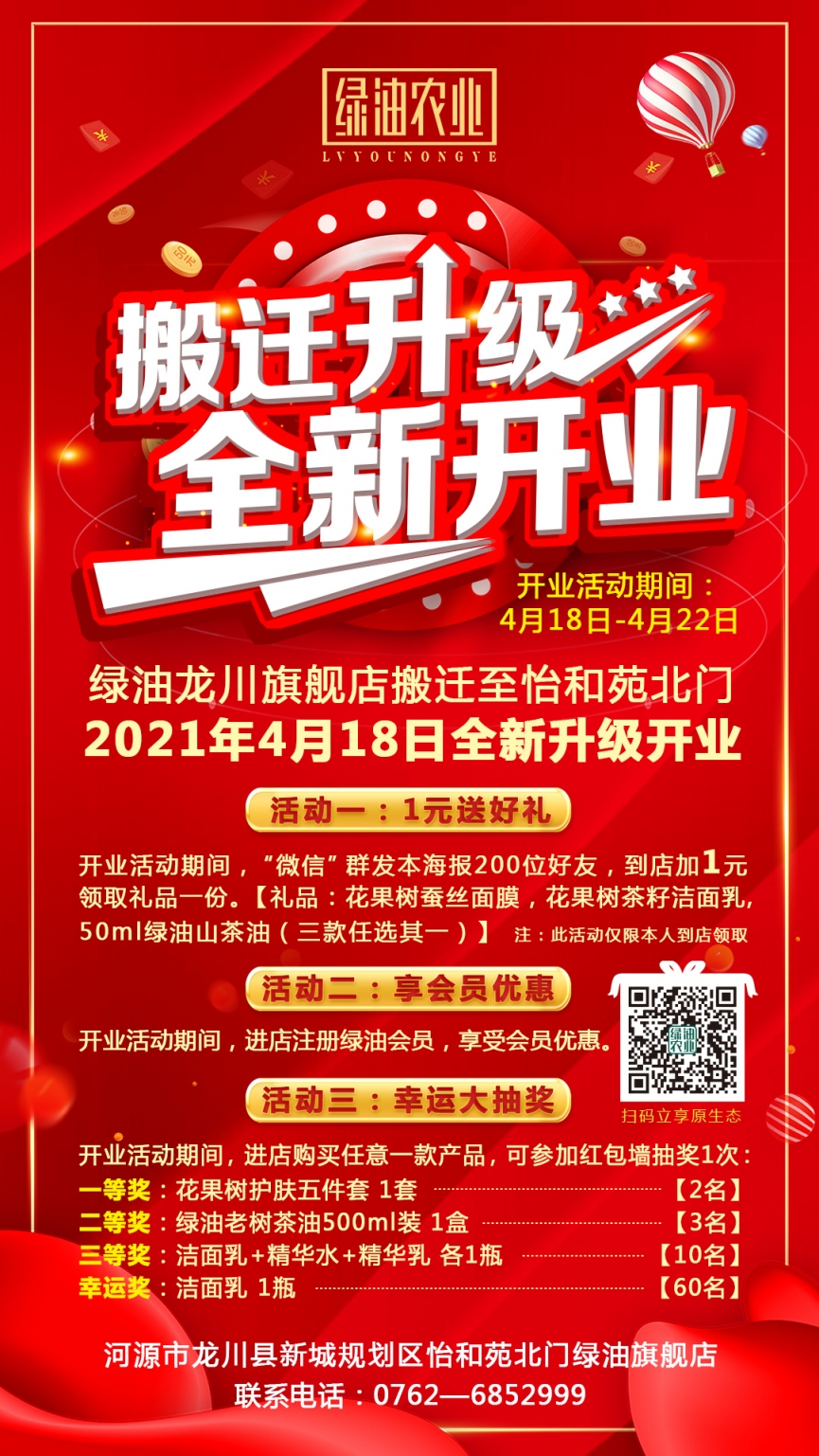 綠油龍川旗艦店全新開(kāi)業(yè)活動(dòng)中