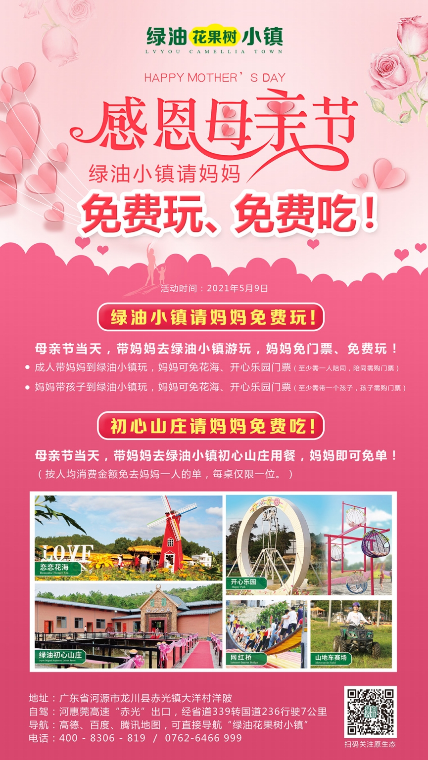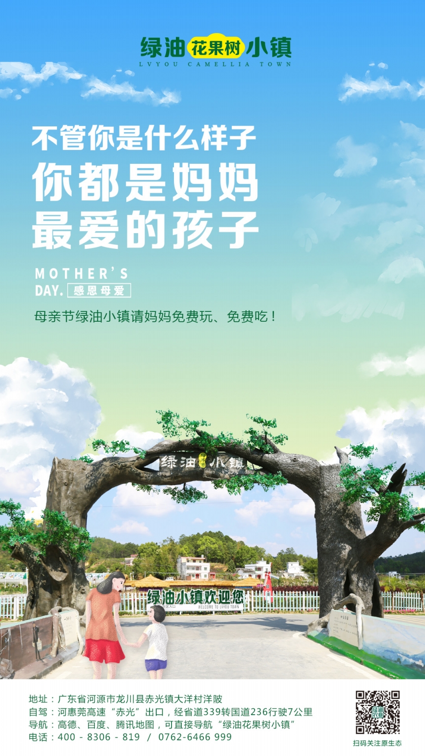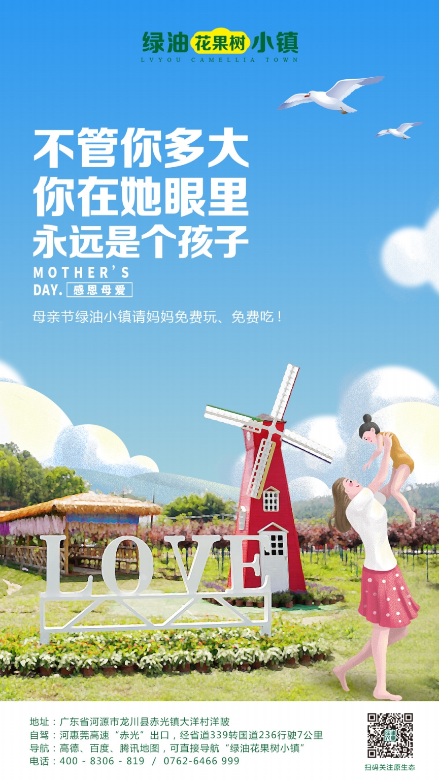 母親節(jié)當(dāng)天,帶媽媽去綠油小鎮(zhèn)游玩,媽媽免門票、免費玩!