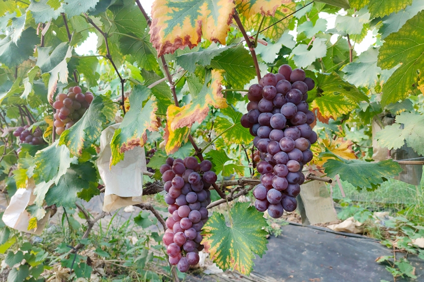 葡萄園里不僅有陽(yáng)光玫瑰,還有市面上備受好評(píng)的巨峰葡萄,輕咬一下就爆汁,讓你有初戀般的甜蜜,甜而不膩!