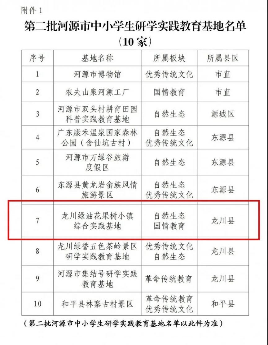 第二批河源市中小學(xué)生研學(xué)實(shí)踐教育基地名單