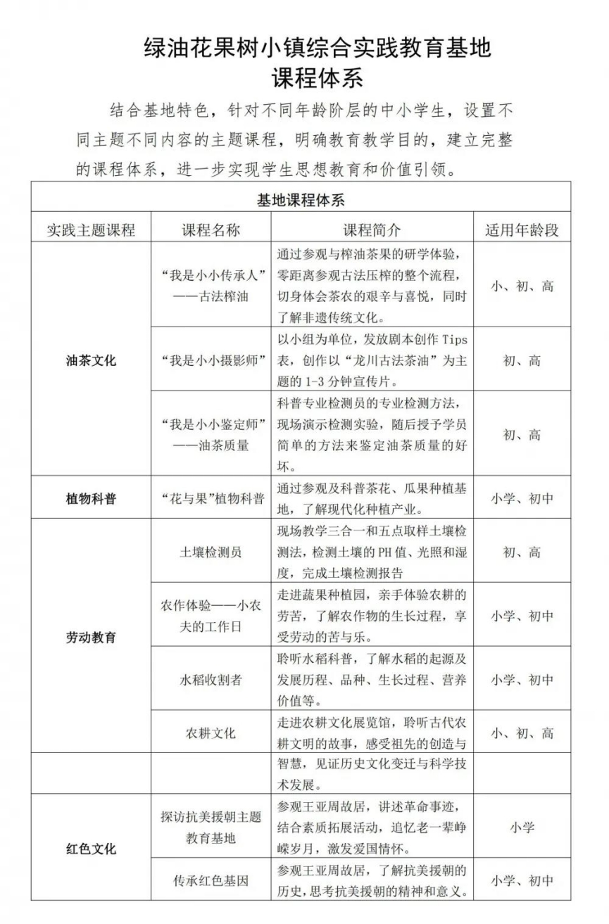 綠油花果樹小鎮(zhèn)研學(xué)基地是集紅色教育、非遺文化、科普研學(xué)、油茶特色、自然生態(tài)、餐飲住宿、團(tuán)隊(duì)拓展等為一體的綜合研學(xué)實(shí)踐基地,具有客家鄉(xiāng)村文化、油茶文化、農(nóng)耕文化、紅色文化特色。