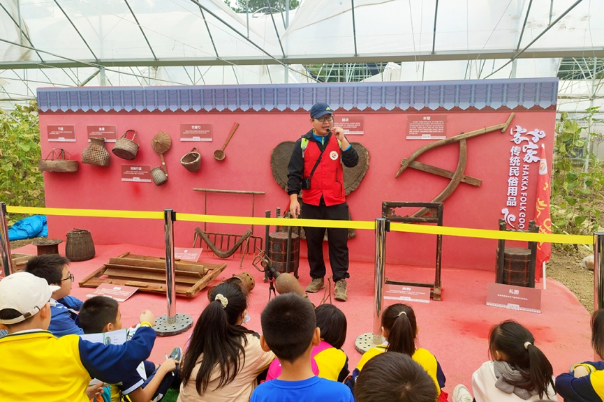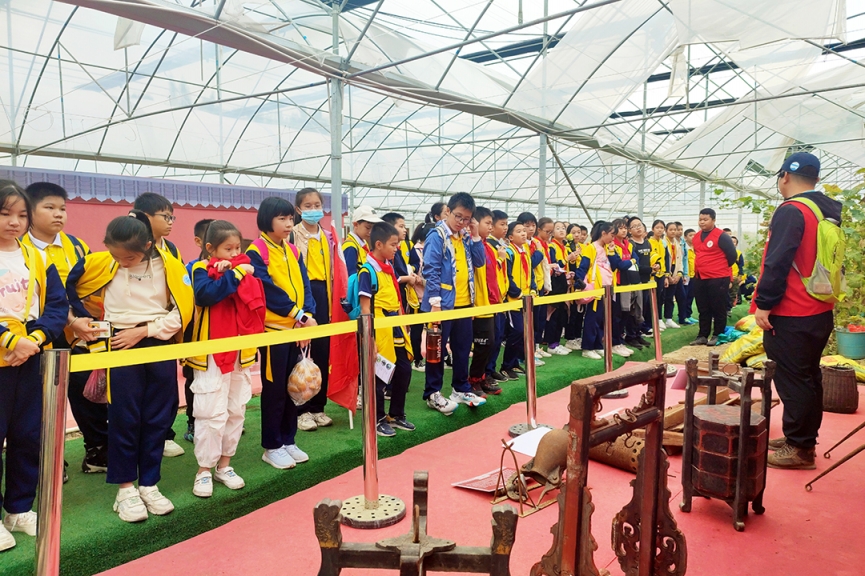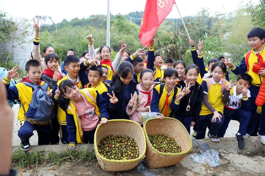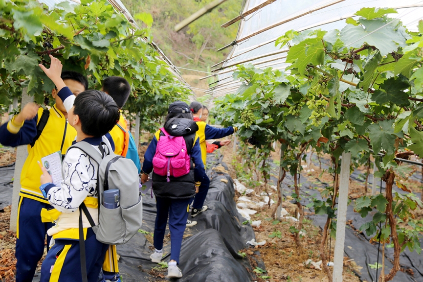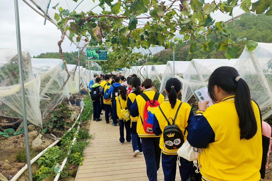 10月22日,綠油農(nóng)業(yè)迎來了河源市第三小學(xué)六年級(jí)400多名師生研學(xué)實(shí)踐教育活動(dòng)。教育需要實(shí)踐,成長需要體驗(yàn)。讓學(xué)生們增長見識(shí),開闊視野,體驗(yàn)“行走教育的力量”! 了解民俗文化 同學(xué)們來到綠油花果樹小鎮(zhèn)景區(qū),在客家文化展示區(qū)參觀學(xué)習(xí)了客家民俗文化,了解客家傳統(tǒng)勞作工具:竹漏勺、織布機(jī)、棕衣、木犁、竹籃、魚簍、耙......,這些從未見過的工具讓學(xué)生們大開眼界。 品嘗果園趣味 來到精品葡萄園,學(xué)生們認(rèn)識(shí)了品種繁多的葡萄:巨峰葡萄、夏黑葡萄、陽光玫瑰葡萄、甜蜜藍(lán)寶石葡萄……看到這么多誘人的葡萄,有的學(xué)生拿著筆記本記錄自己的所見所聞;有的學(xué)生還親自采摘,感受采摘的無限樂趣,品味葡萄的誘人滋味。 采摘茶果比賽 “摘茶果”比賽開鑼了!學(xué)生們在茶園里尋找著茶果,不一會(huì)兒,一袋袋“戰(zhàn)利品”,一雙雙探知的眼眸,一張張歡樂的笑臉定格在這茶園之中……
