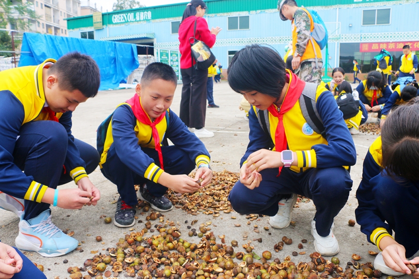 體驗(yàn)收成樂趣 “茶油仔,圓溜溜,剝起殼來真不易……”,在綠油總部,同學(xué)們體驗(yàn)著茶油仔剝殼過程的艱辛,感受著收獲的樂趣! 感受非遺技藝 同學(xué)們在綠油“非物質(zhì)文化遺產(chǎn)——綠油古法壓榨車間”,聆聽綠油小鎮(zhèn)研學(xué)導(dǎo)師的講解,了解了非遺油茶古法榨油技藝及現(xiàn)代化榨油技術(shù),并親自體驗(yàn)了“敲”、“推”、“磨”等古法榨油工藝。 山莊共進(jìn)午餐 臨近中午,同學(xué)們齊聚綠油初心山莊共進(jìn)午餐,品嘗當(dāng)?shù)鼐G色有機(jī)蔬菜,補(bǔ)充體能消耗。 師生合影留念 各班師生合影留念,把研學(xué)的快樂與成長的足跡留在相片里,成為美好的記憶。 此次研學(xué)實(shí)踐,讓學(xué)生走出教室,走進(jìn)社會(huì),在“游”中“學(xué)”,在“學(xué)”中“悟”,開闊了視野,拓寬了知識(shí)面,進(jìn)一步了解非遺油茶文化,傳承家鄉(xiāng)文明。 綠油花果樹小鎮(zhèn) 綠油花果樹小鎮(zhèn)是由龍川綠油農(nóng)業(yè)發(fā)展有限公司投資興建的國家AAA級(jí)旅游景區(qū),2021年榮獲河源市第二批中小學(xué)生研學(xué)實(shí)踐教育基地,為學(xué)生們提供良好的校外教育活動(dòng)場所。 園區(qū)包含戀戀花海、茶花品種園、精品葡萄園、開心樂園、越野山地車、CS實(shí)戰(zhàn)區(qū)、初心山莊、民宿、非物質(zhì)文化遺產(chǎn) “古法壓榨山茶油”、抗美援朝愛國教育基地等景點(diǎn),是集觀光旅游、休閑采摘、餐飲住宿、度假游樂為一體的精品鄉(xiāng)村休閑生態(tài)農(nóng)旅景區(qū)。 研學(xué)火熱招生中 聯(lián)系人:鄺經(jīng)理 聯(lián)系電話:18923689845 研學(xué)地點(diǎn):河源市龍川縣綠油花果樹小鎮(zhèn)景區(qū) 國家AAA級(jí)旅游景區(qū) 綠油花果樹小鎮(zhèn)歡迎您!