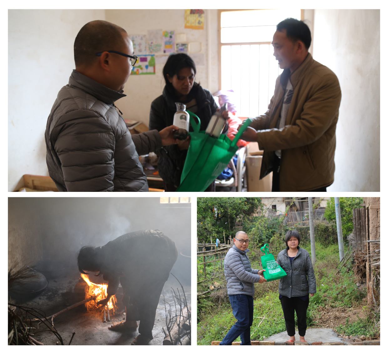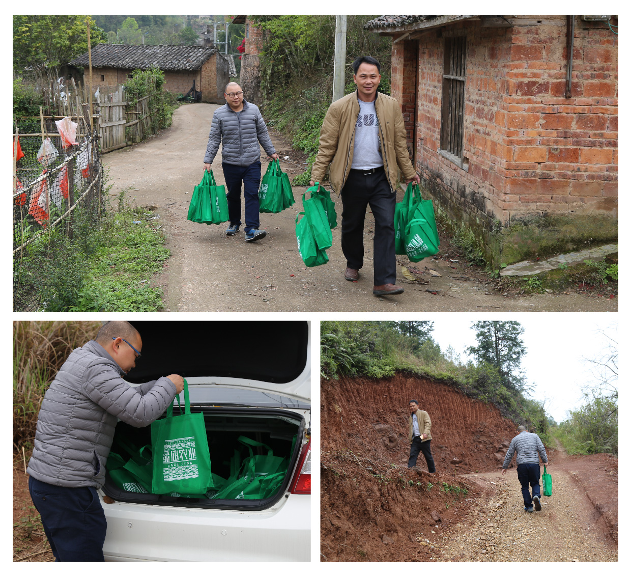 綠油公司工作人員大包小包提著前往農(nóng)村的貧困家庭送上婦女節(jié)的祝福。