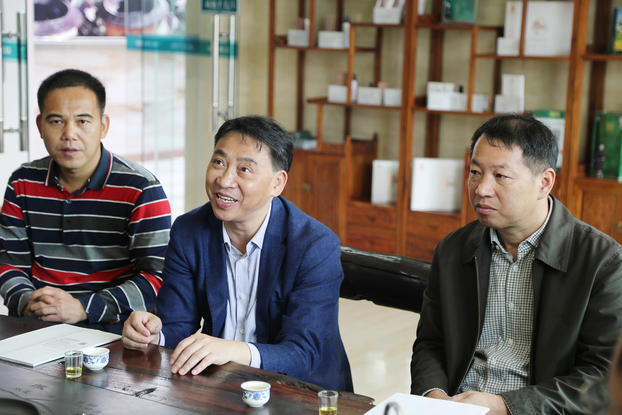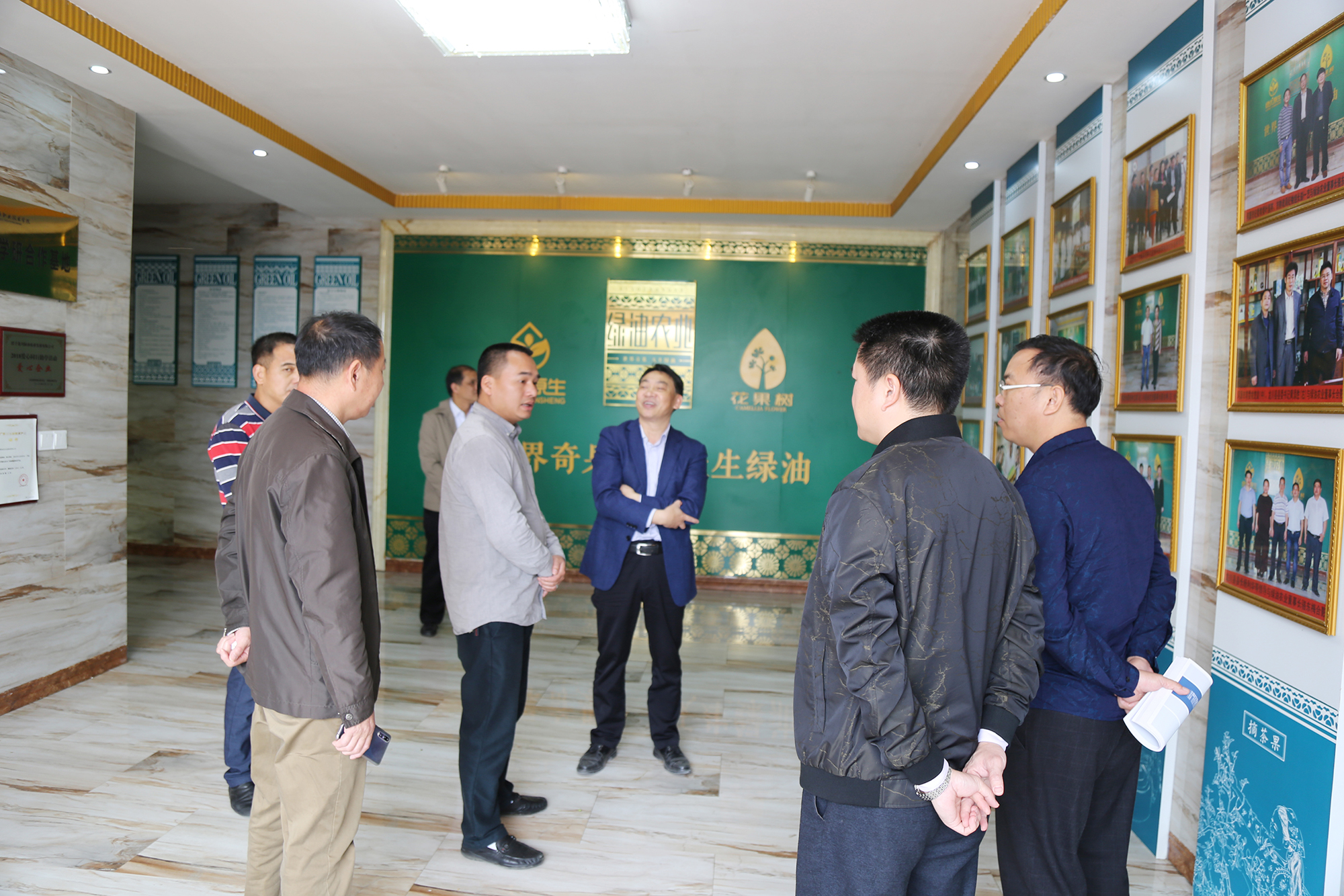 隨后來到綠油產(chǎn)品展廳,綠油董事袁周東先生詳細(xì)介紹綠油山茶油與眾不同的優(yōu)點(diǎn)以及山茶籽衍生品“花果樹”嫩膚系列和洗護(hù)系列的妙用。