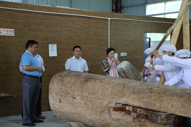 (駱東梅董事長向領(lǐng)導(dǎo)一行介紹千年古法壓榨生產(chǎn)線)