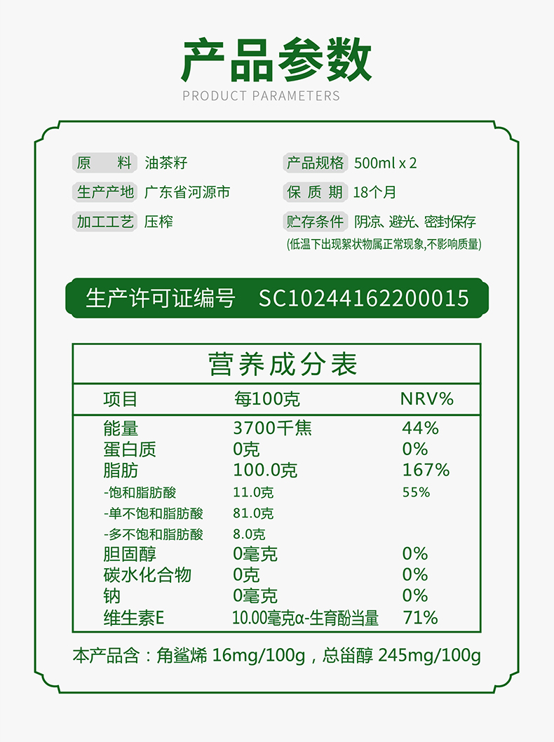 - 生產(chǎn)工藝:千年古法物理壓榨